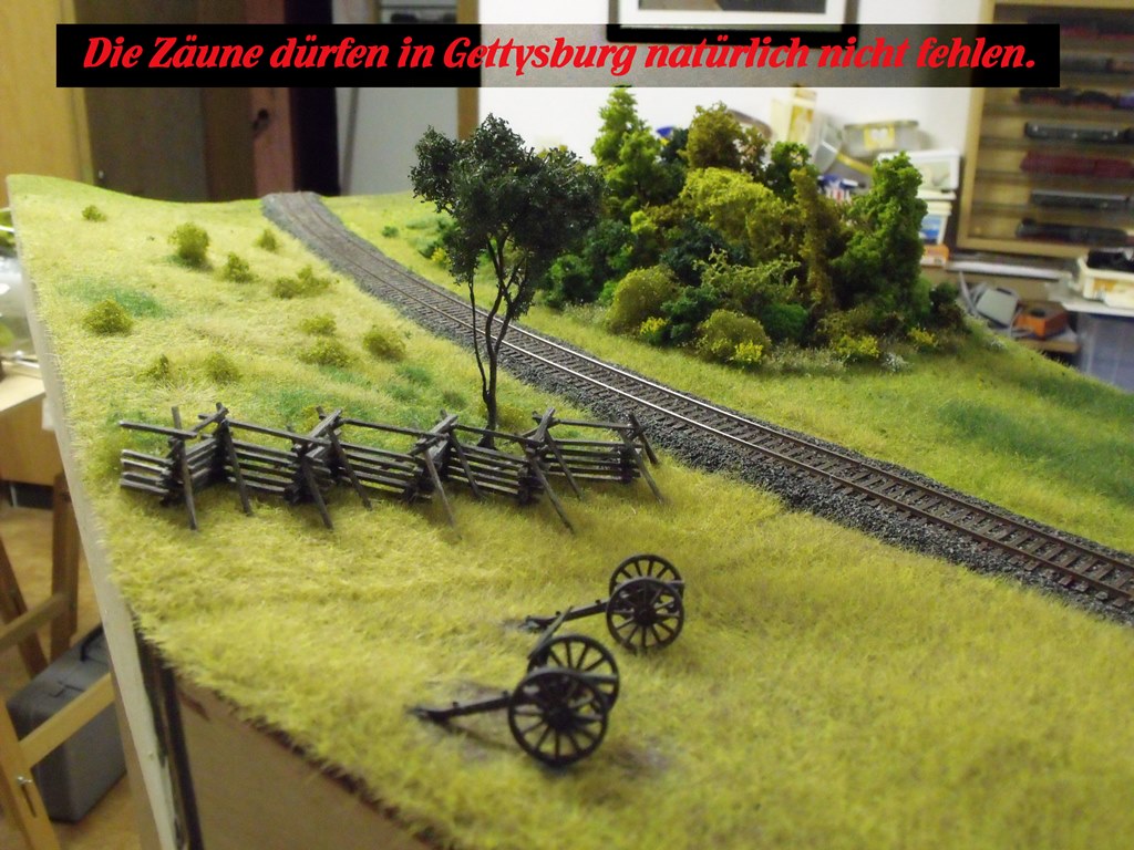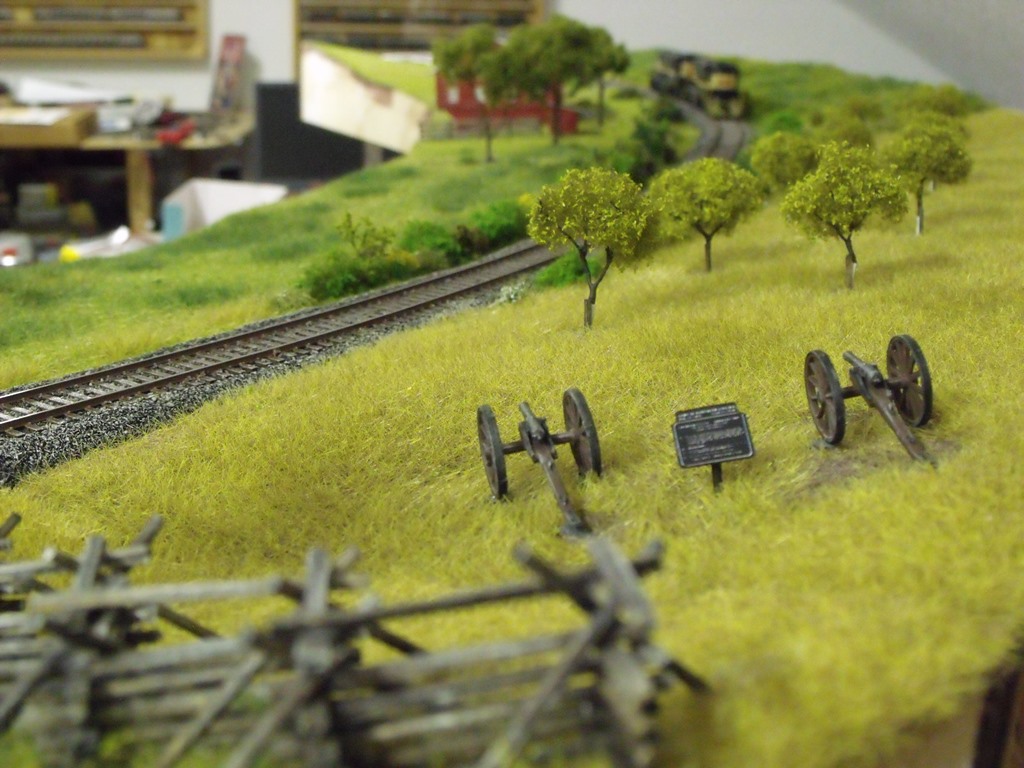FREMO – US-Modellbahnkurve – Rounds of Gettysburg 2 „Rounds of Gettysburg“ No. 2 Historische Geschützstellung der Konföderierten Artillerie. [Zeige eine Slideshow]
